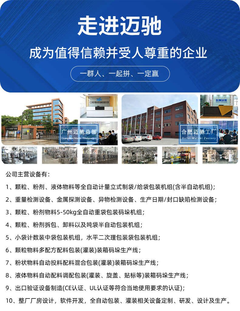 作為全自動包裝機械設備生產廠家,邁馳包裝的產品涵蓋了多個包裝領域,包括食品、醫(yī)藥、化工、日化等多個行業(yè)。公司產品的種類繁多,能夠滿足不同客戶的包裝需求。