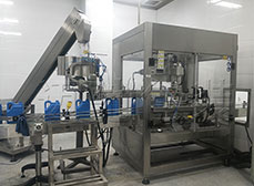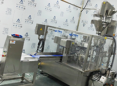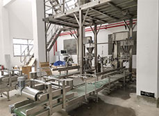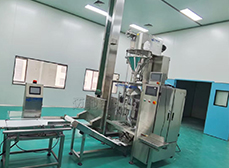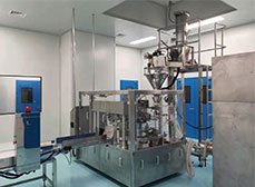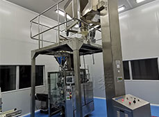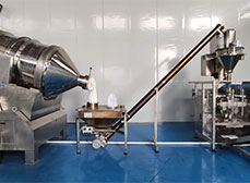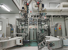 獸藥流水線內(nèi)包間:移動料倉--移動料倉提升機--水平螺旋供料機--立式卷材制袋...